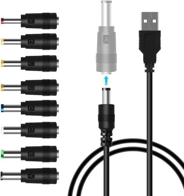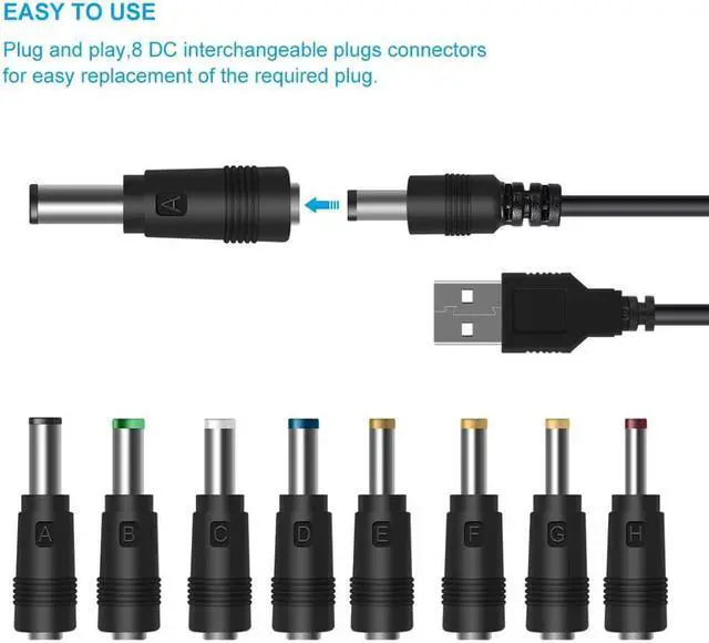 Multi-Purpose Cable: USB to DC power cable with 8 interchangeable plugs connectors, which makes it fits most of home appliances. You do not have to worry about finding the suitable adapters when using various devices.