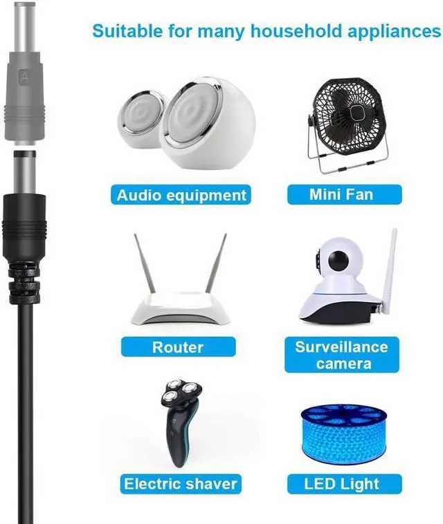Extensive Compatibility: Universal USB to DC charging cable compatible with router,smartphones,speaker,IP-cameras,security equipment,LED lights,digital audio-visual,razors,mini fans,small appliances and most types of home electronics.Please pay attention to the interface type of the device before purchasing.Some devices may not work,such as HP laptop.