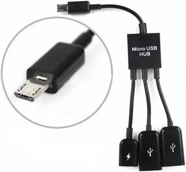 Note: Female Micro USB lead is only to charge the accessories such as mouse keyboard etc, it will not charge smartphone or tablet. It doesn't supply power from female Micro USB to Male micro USB. Meaning you can not charge mobile or tablet while connected with it. The female micro USB is only to supply power to the USB devices connected with it.