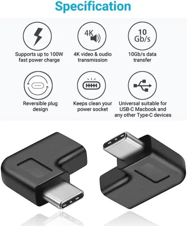 Type C USB 3.1 Right Angle adapter comes with a male to female jack