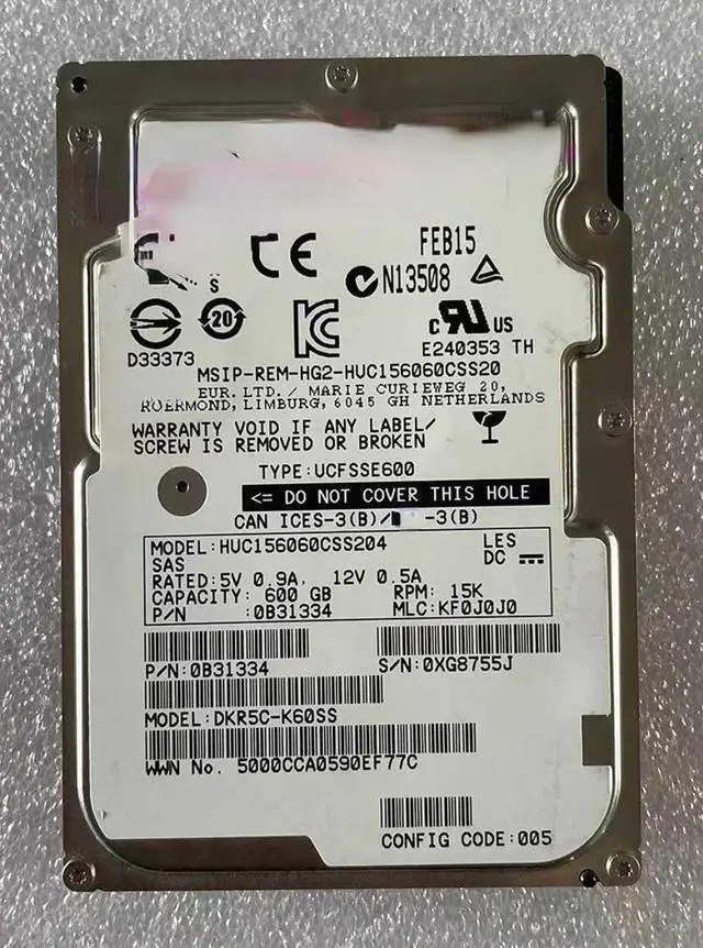 For HGST/Hitachi HUC156060CSS204 DKR5C-K60SS 600G 15K SAS 12Gb hard drive