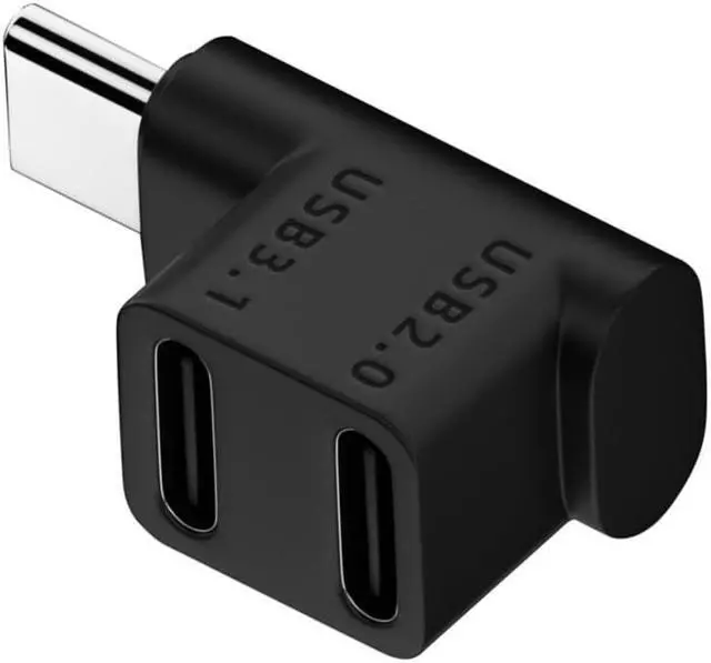 10Gbps USB3.0 Type C Male to Dual Female Power Data Splitter Adapter Up Down Angled.