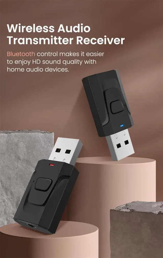 Wirelessly transfer audio from the PC, notebook to Bluetooth-Compatible headset or speaker through USB port, no audio cable is required.