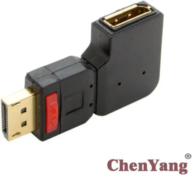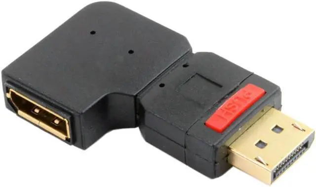 This Displayport adapter enables you to lead the female port of your Displayport devices, e.g. flat screen etc. 90° left.