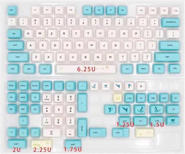 Quantity: 127 keys,includes 1.75U, 2U shift, 1.25U enovl, 6.25U spacebar