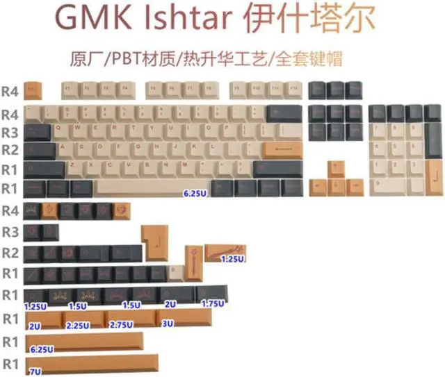 Quantity:140 keys includes 1.75U, 2U shift, 1.5U ctrl alt, 7U spacebar, ISO enter