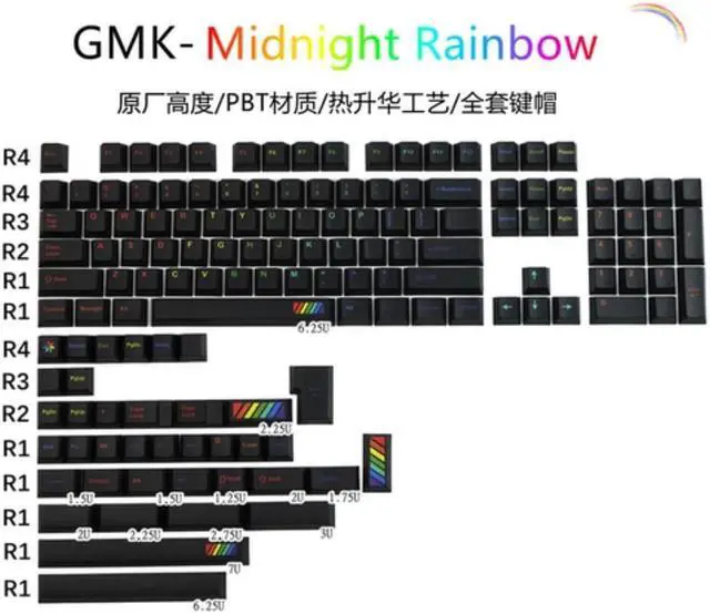 Quantity:140 keys includes 1.75U, 2U shift, 1.5U ctrl alt, ISO enter and 6.25U, 7U spacebar
