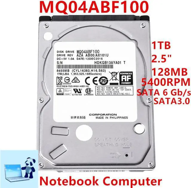 • HDD For Toshiba 1TB 2.5" SATA 6 Gb/s 128MB 5400RPM For Internal Hard Disk For Laptop Hard Drive For MQ04ABF100