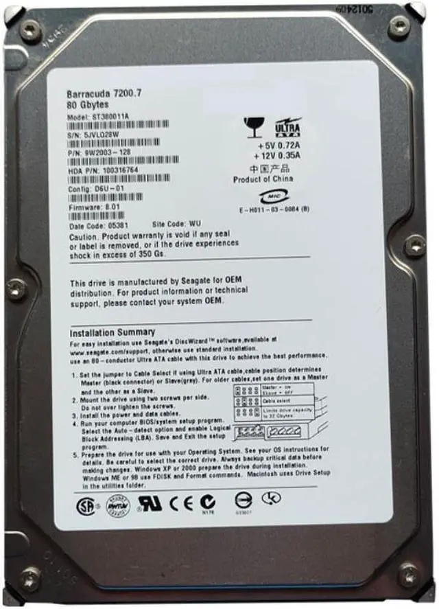 • HDD For Seagate Brand 80GB 3.5" 7.2K IDE 2MB 7200RPM For Internal Hard Disk For Desktop Computer HDD For ST380011A