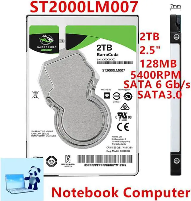 • HDD For Seagate BarraCuda 2TB 2.5" SATA 6 Gb/s 128MB 5400RPM For Internal Hard Disk For Laptop HDD For ST2000LM007