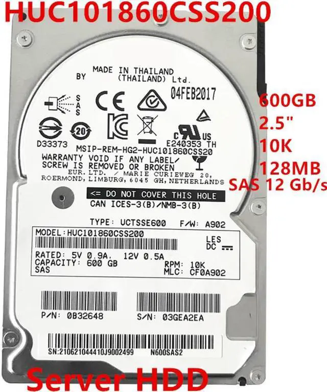 • HDD For Hgst 600GB 2.5" SAS 12 Gb/s 128MB 10K For Internal Hard Disk For Enterprise Class HDD For HUC101860CSS200