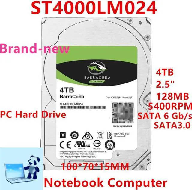 • HDD For Seagate BarraCuda 4TB 2.5" SATA 128MB 5400RPM For Internal Hard Disk For Notebook HDD For ST4000LM024