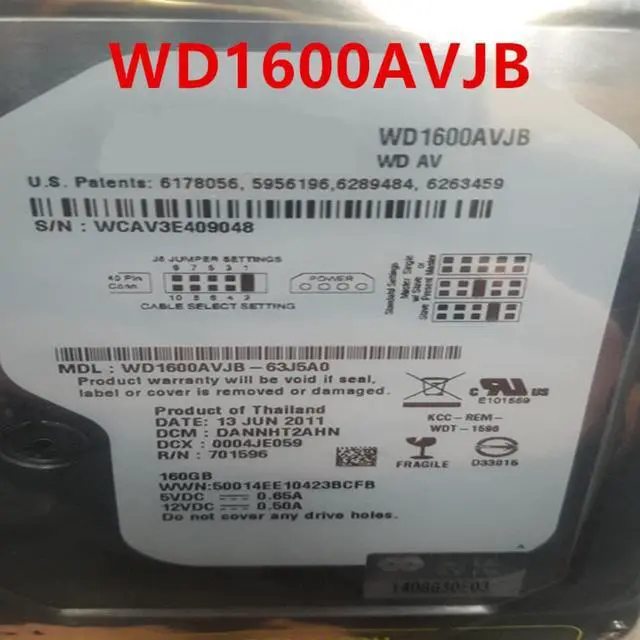 • HDD For WWD 160GB 3.5" IDE 8MB 7200RPM For Internal HDD For Desktop HDD For WD1600AVJB