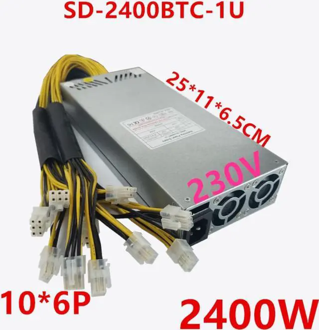 Miner PSU For R-Senda Single Channel 12V 10*6P 2400W Mining Power Supply SD-2400BTC-1U