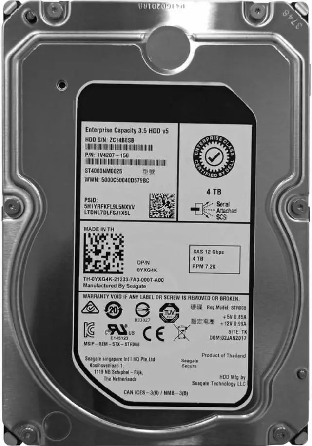 • HDD For Dell 4TB 3.5" SAS 12 Gb/s 128MB 7200RPM For Internal HDD For Enterprise Class HDD For 0YXG4K ST4000NM0025