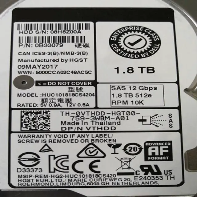 • HDD For Dell 1.8TB 2.5" SAS 128MB 10K For Internal Hard Disk For Enterprise Class HDD For VTHDD HUC101818CS4204