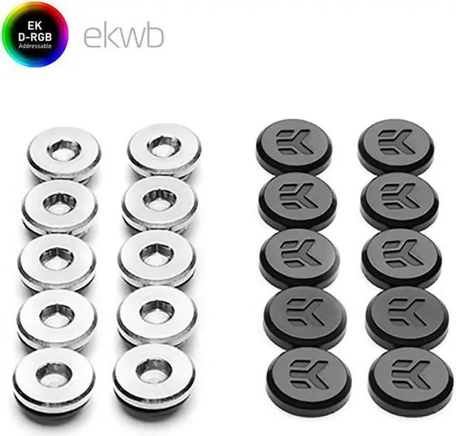 These black ABS covers are in the shape of the EK logo, provide a stylish look, and are easy to align in any direction so that the EK logo is showing in the proper orientation.