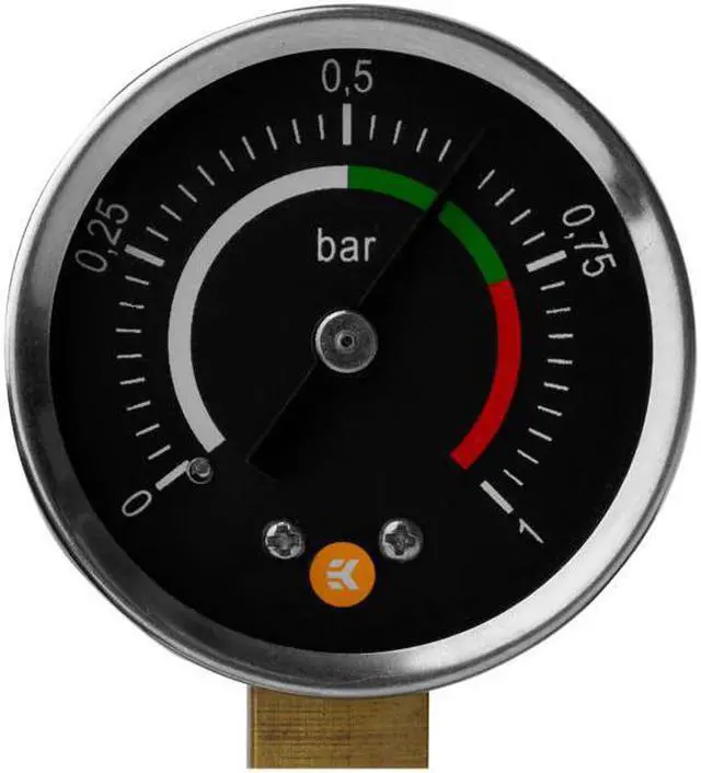 Keep in mind that the pre-defined safe maximum pressure defined on the gauge is for EK products only. EK cannot guarantee for non-EK products failing under the predefined safe zone marked on the gauge.