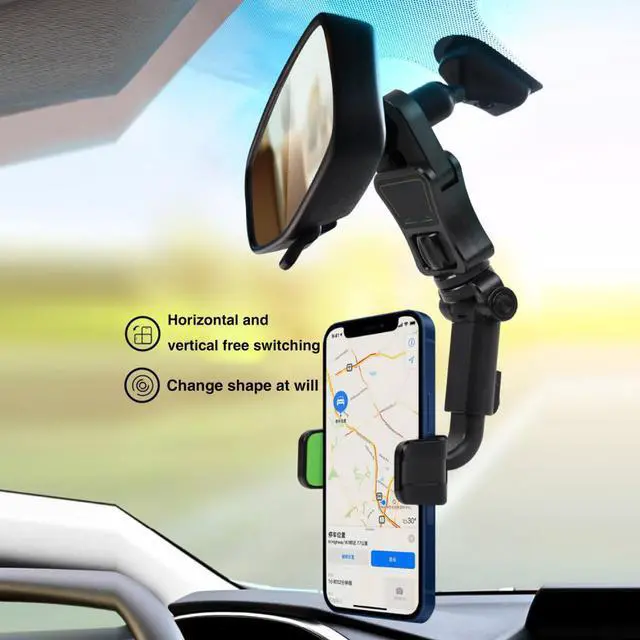 This bracket allows the mobile phone or GPS to be mounted on the rearview mirror, convenient for you to touch screen with one hand while driving, and you can adjust the navigation route only by one-hand, to ensure driving safety and reassure your family.