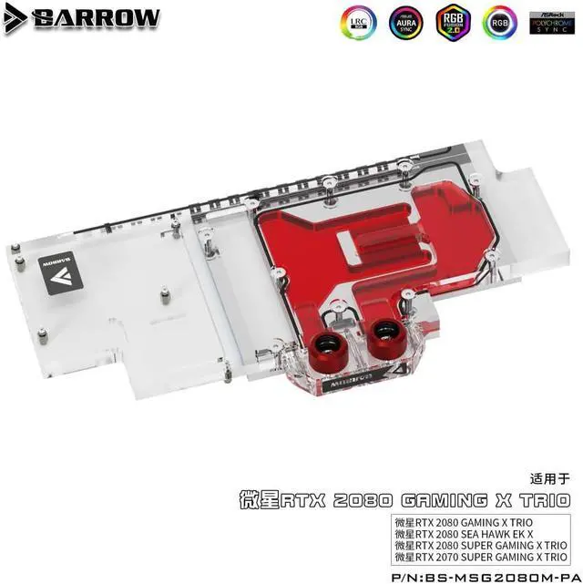 • Barrow BS-MSG2080M-PA, bloc d'eau graphique complet LRC 2.0 pour MSI RTX2080 GAMING X TRIO / SEA HAWK EK X