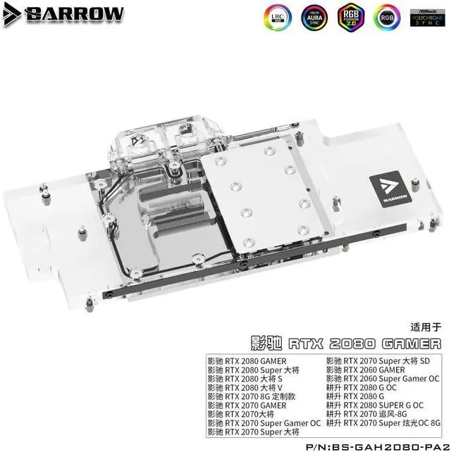 • Barrow BS-GAH2080-PA2, LRC 2.0 Full Cover Graphics Card Water Cooling Blocks, For GALAXY RTX2070 Gamer/8G, Gainward RTX2070 8G
