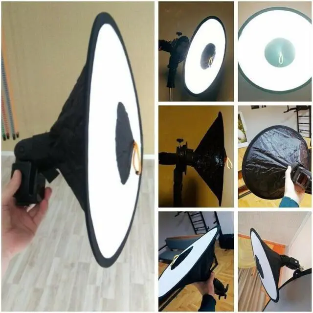 This conical ring softbox using reflective fabric of higher reflectivity, rigid frame of more elastic, translucent soft cloth of more diffuse, lens opening of conical design, flash window of light leak-proof design, so that the same flash brightness improved by 10%, and the softbox durability increased by 10%.