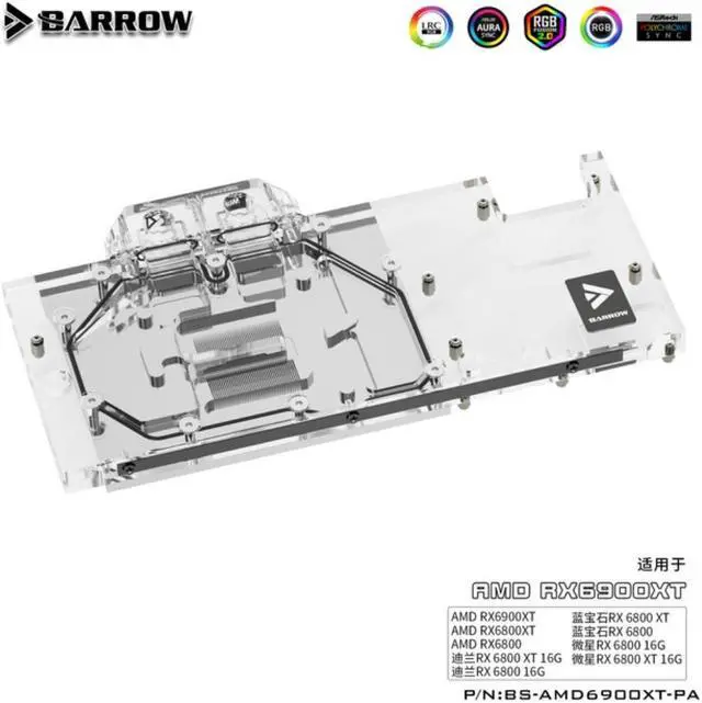 • Barrow BS-AMD6900XT-PA A-RGB full coverage GPU Water Block for AMD 6900XT Aurora