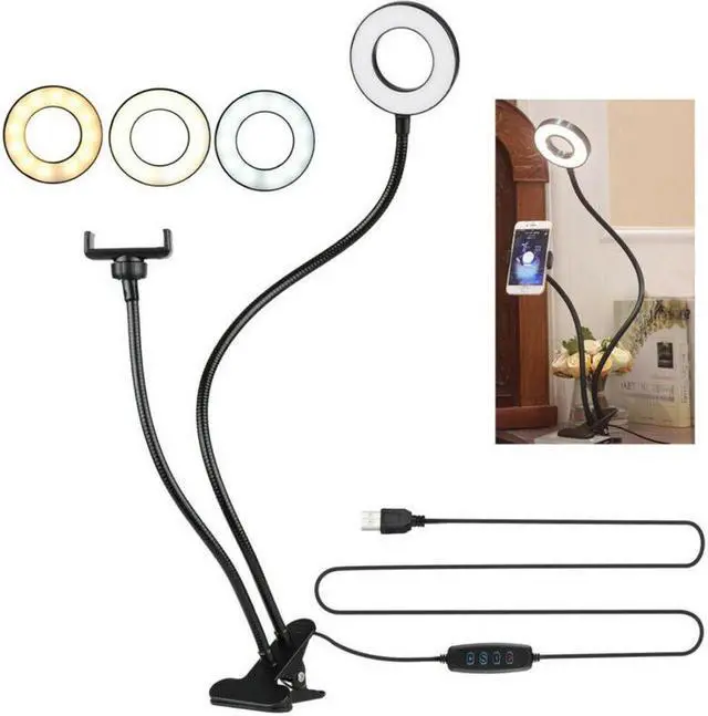 LED Selfie Ring Light Phone Holder Flexible Stand Long Arm for Stream Live Lamp