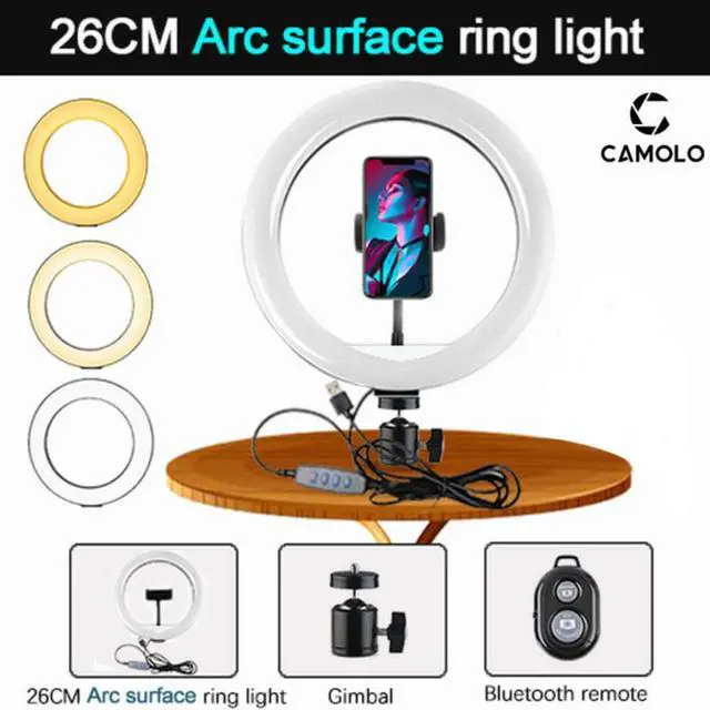 1.10inch Arc surface ring light/10in/12in RGB Ring light can be mounted on the bracket and carried anywhere, it can also be removed from the bracket at any time, the tripod ball head can rotate 360 degrees to adjust to any angle.