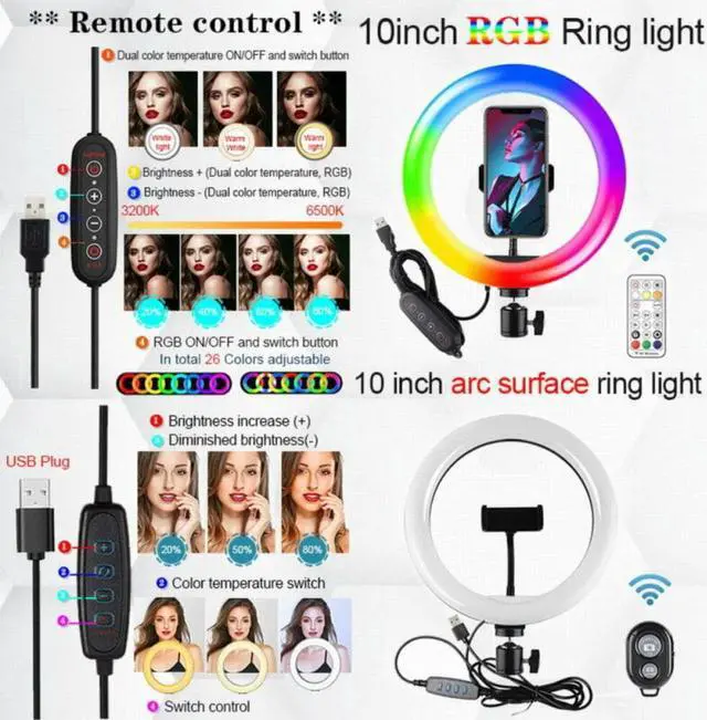 Note: The difference between 10-in/12-in curved ring light and 10 inch RGB ring light