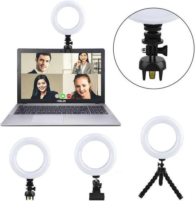 : The ring light clip has a silicone pad to protect the computer screen from scratches. The maximum opening of the clip is 4 cm and can also be placed as a reading light on the headboard of the bed or the table side. The FGen ring light comes with tripod and mobile phone holder. 360 universal rotation to adjust your different angle of application.