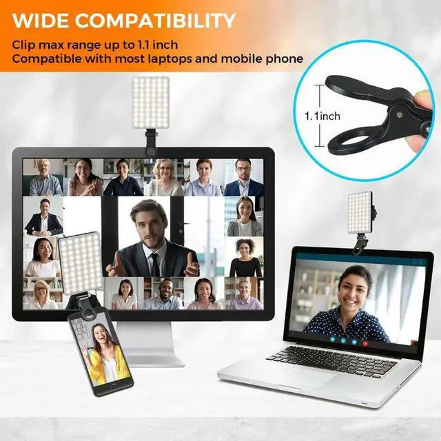 Flexible and PortableThe angle adjustment knob allow you to adjust the light up to 180°, providing proper position lighting. Clip max range up to 1.1inch, is compatible with most laptops and mobile phone. Small in size, light in weight, it's easy to carry when going out, and meet your business need when in remote working.