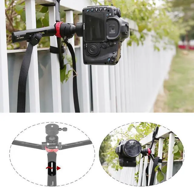 The strap opening in the middle of the tripod can be climbed and fixed on various complicated poles and branches.