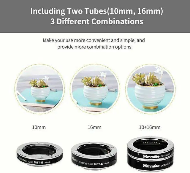 COMMLITE CM-MET-E Aluminum Alloy 10mm + 16mm Macro Extension Tube Adapter Set is perfect for your Sony E Auto Focus Lens & Sony E-mountCamera