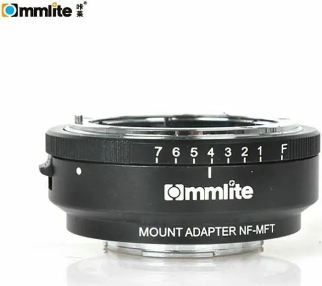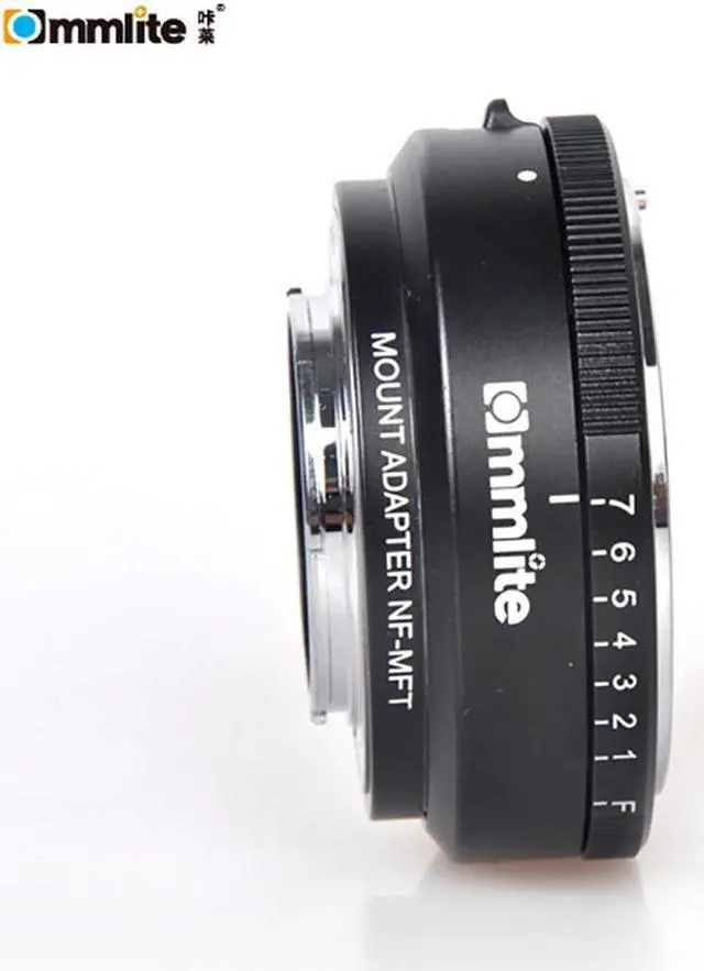 allows a Nikon F-mount, G-type lens to be used on a Micro Four Thirds-mount camera. To control the amount of light that enters a camera when combined with a lens, an aperture-control ring is built into this lens mount adapter. The control ring couples with the lens's aperture mechanism so that adjustments to brightness as well as depth-of-field can be made. It features eight stop adjustments that help prevent unwanted noise from being recorded while capturing video with sound.