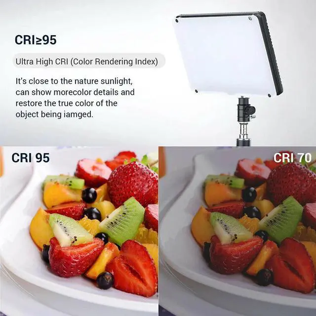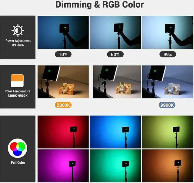 The color temperature is accurately adjustable from 2800K-9900K under CCT mode, CRI is high up to 95+, and brightness can be adjusted from 0%-99% steplessly.