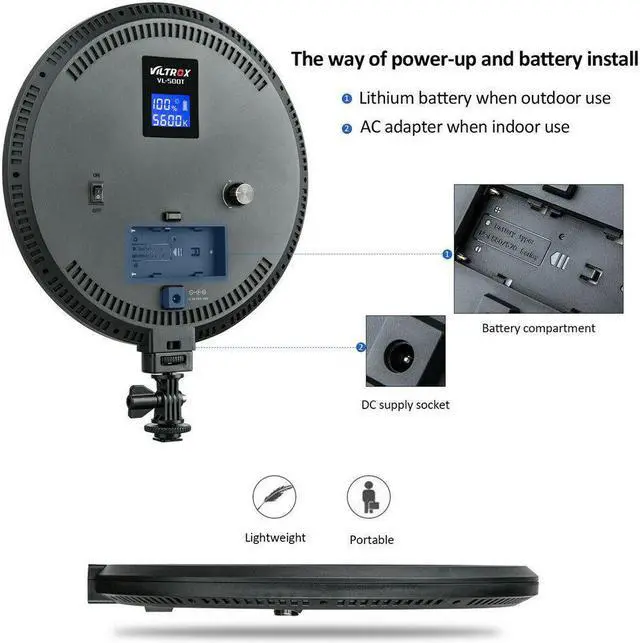 PRO Viltrox VL-500T 25W Dimmable Fill Light Photo Studio Camera Video Lighting Lamp with LCD & 140 LEDs