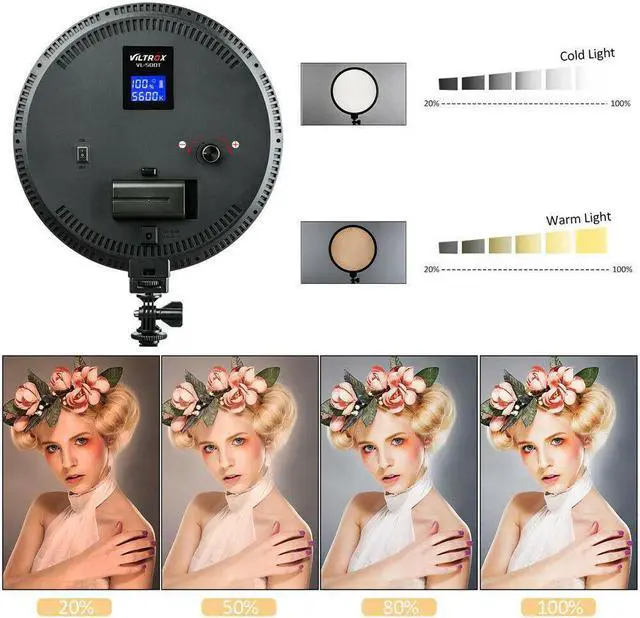 VL-500T LED ring video light adopts the newest LED honeycomb design which is of high brightness and accurate color temperature.