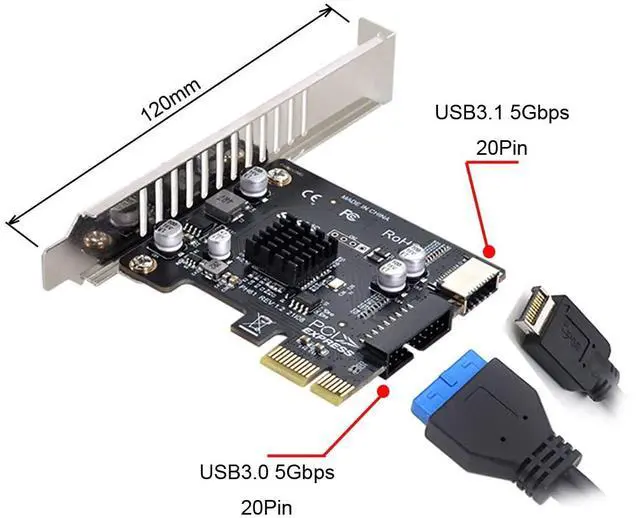 5Gbps Type-E USB 3.1 Front Panel Socket & USB 3.0 20Pin to PCI-E 1X Express Card VL805 Adapter for Motherboard