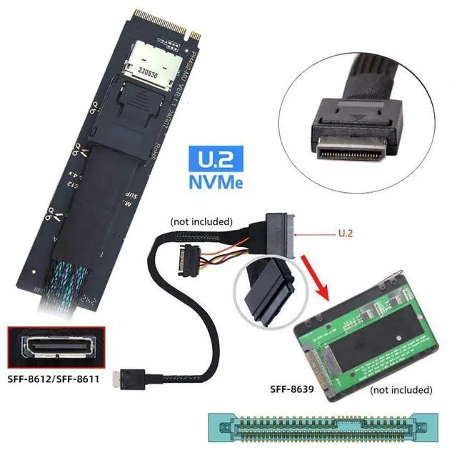 2280 PCI-E4.0 M.2 M-key to Oculink SFF-8612 SFF-8611 Vertical Host Adapter for NVME U.2 SSD eGPUThis convertor expands the 2280 M-Key system by one SFF-8612 oculink interface.It can be connected e.g. one SSD or eGPU Graphics Card by using an optional cable.The card transmits PCI Express 4.0 signals using the NVMe protocol.Connectors: 1 x OCuLink SFF-8612 female and 1 x 67 pin M.2 Key M male.Data transfer rate up to 64Gbps, Supports NVM Express (NVMe) 1.2.
