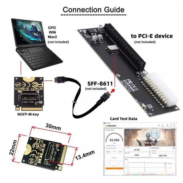 2230 PCI-E4.0 M.2 M-key to Oculink SFF-8612 SFF-8611 Vertical Host Adapter for NVME U.2 SSD eGPUThis convertor expands the 2230 M-Key system by one SFF-8612 oculink interface.It can be connected e.g. one SSD or eGPU Graphics Card by using an optional cable.The card transmits PCI Express 4.0 signals using the NVMe protocol.Connectors: 1 x OCuLink SFF-8612 female and 1 x 67 pin M.2 Key M male.Data transfer rate up to 64Gbps, Supports NVM Express (NVMe) 1.2.The angled type vertical connector Allowing you to connect it to a female port, even if space around the port is limited.