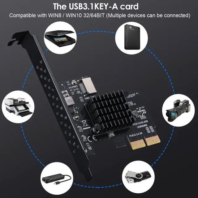 This product can convert the PCIE high-speed data transfer interface of the computer into a TYPE-C 3.1 front-end high-speed data transfer interface (TYP-E 10Gbps) and an integrated USB 2.0 port.