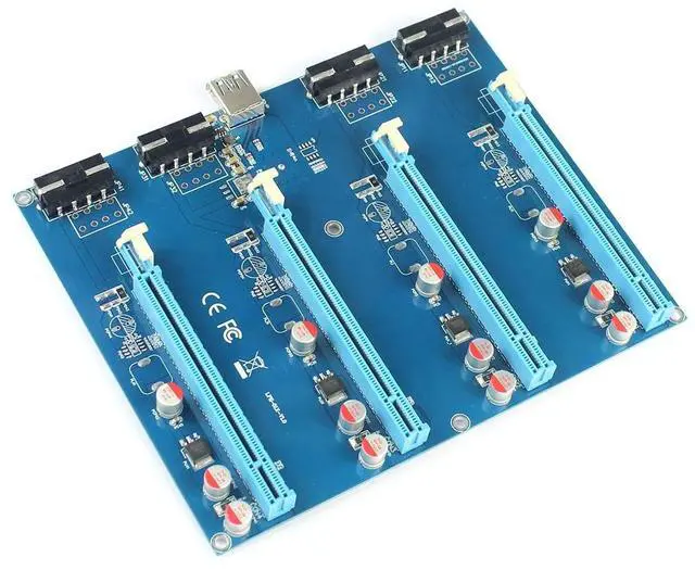 PCI-E 1X to 4 slot 16X riser card with high speed USB 3.0 cable.