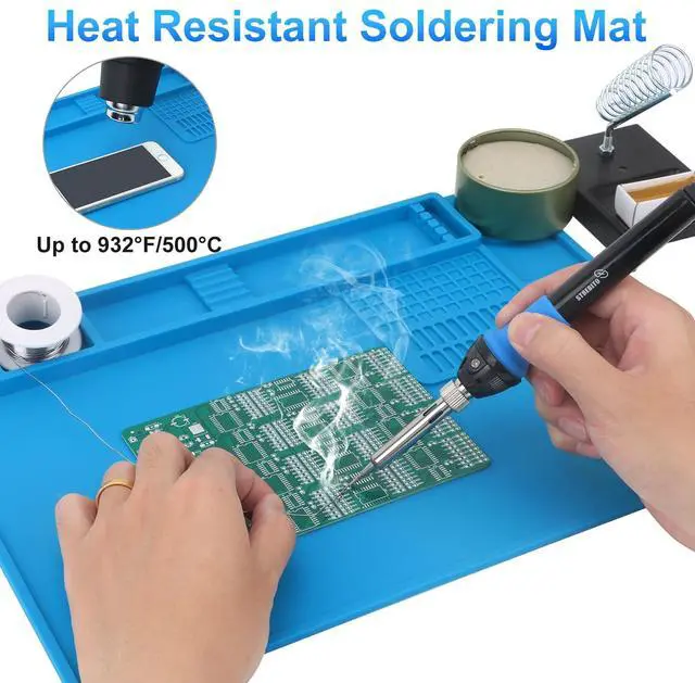 - Wide Application: At 13.78 x 9.84 inches, this solder mat provides ample space for soldering and repairing various electronics, such as watch, iPhone, and RC drone. It's also a practical gift for DIY enthusiasts, technicians, and professionals. The repair mat features 3 magnetic zones for metal components and screws, and non-magnetic zones to protect precision parts from magnetic interference