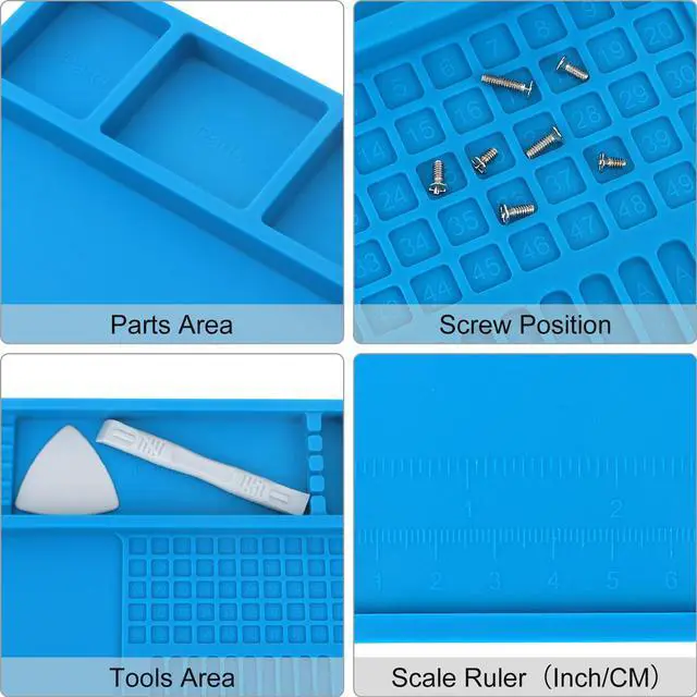 - Easy to Clean & Non-Slip: Dirt-resistant and corrosion-resistant, this magnetic screw mat is easy to clean with water or alcohol. It features a non-slip surface on both sides to keep it securely in place and raised edges to prevent parts from rolling off. For added convenience, our electronic work mat includes built-in metric and imperial rulers for precise measurements