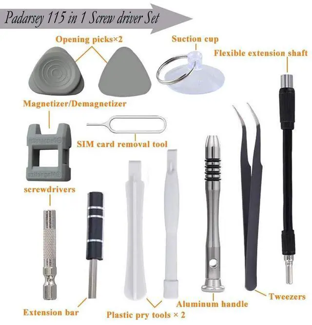 • Multi-Magnetic Screwdriver Set :115 in 1 Precision Screwdriver Set have more tools, Comes with all the necessary tools for a wide variety of jobs. Perfect for repairing laptops, mobile devices and other precision items like wristwatches and eyeglasses. Light weight and compact design