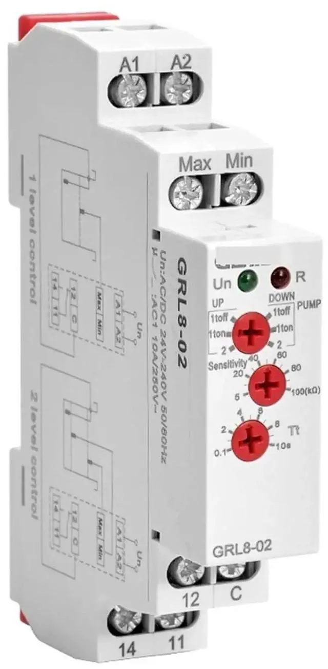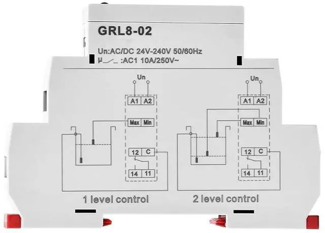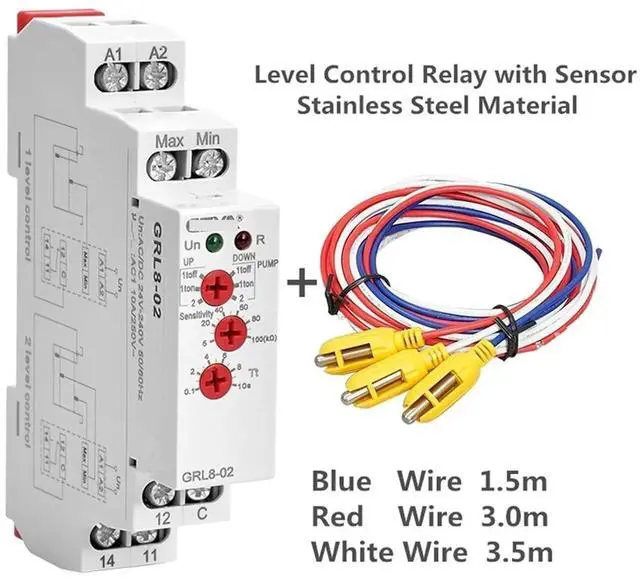 GRL8 Water Level Control Relay with Stainless Sensor AC/DC24V-240V Level Control Sensor 1Pcs(GRL8-02 with Sensor)