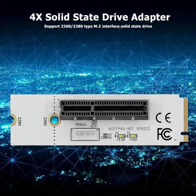 NGFF M. 2 to PCI-E 4X Riser Card M2 Key M to PCIE X4 Adapter with LED Indicator