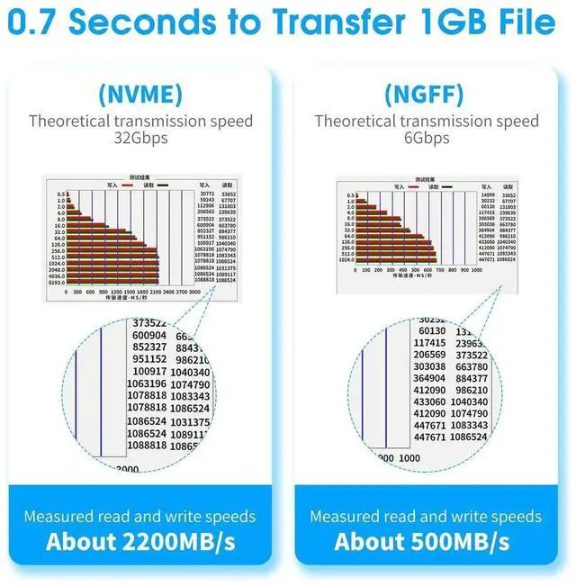 [High-speed Transmission] Using NVMe protocol and PCI-E channel, the maximum reading speed reaches 32Gbp/s (theoretical speed). This greatly reduces the transfer time of large files. *Note: Actual transmission speed depends on device interface and working environment.