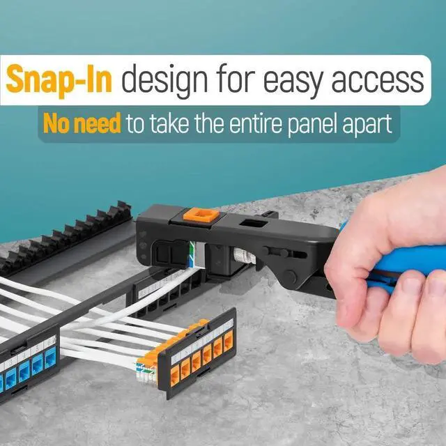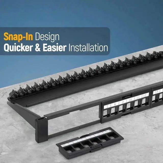 The 24 ports are divided into 4 modules with 6 ports each. These smaller port groupings and the snap-IN design make it easier to conduct maintenance and replacements. It also saves you from having to re-run the whole cable set up when a malfunction happens.